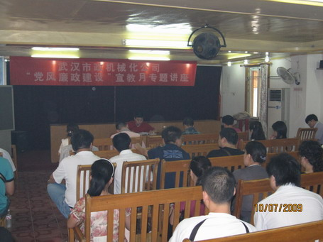 7月10日,机械化公司组织了一次党风廉政建设宣教月专题讲座,中层干部、机关党员60余人参加,该公司副经理蔡光煌就“以科学发展观为指导加强党风廉政建设、促进公司又好又快发展”给大家上了一堂生动且联系实际的党课。专题讲座上,还观看学习了省检察院反贪局副局长吴忠良在集团公司中心组上的授课。