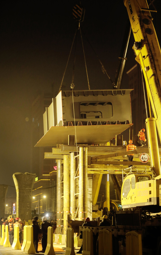 3月11日,机械化公司雄楚大街改造工程项目部组织了首节钢箱梁段验收会,市政工程设计院、市政质量监督站、光投、中铁科工及监理单位参加了会议。会前,验收组到钢箱梁厂家进行了外观验收检查;会上,各单位就验收检查情况对第17联钢箱梁成品质量作出简要评述并一致评定质量达到合格等级,同意验收。12日晚11时18分,该片钢箱梁起吊,光投董事长黄峰、集团副总、雄楚指挥部指挥长刘志勇、机械化公司党政主要领导等现场指导,确保吊装成功。前期,为应对施工控制、钢箱梁精确调位和施工监控难度,指挥部组织安全技术交底会和全员动员会,确保了钢箱梁吊装质量。本次首节钢箱梁吊装成功,标志着雄楚大街高架桥施工难度最大、技术含量最高的主桥上部结构施工全面展开,为力保年底通车打下坚实的基础。12日,长江日报、武汉电视台等媒体进行了专题报导。(丁思、库海滨)