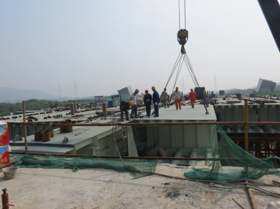 9月7日,桥梁公司承建的高新二路跨外环线桥梁工程钢箱梁和砼箱梁成功合拢。本项目主桥共分四联,第一、二、四联为砼箱梁,长约358;第三联为钢箱梁,共160m,横跨武汉绕城高速。下一步将进行主塔施工,主塔高约67m,分8个节段,由15个钢箱拼装形成。该桥为双索面斜拉桥,全桥共20对斜拉索,该工法目前在中南地区尚属首例。(熊杰)