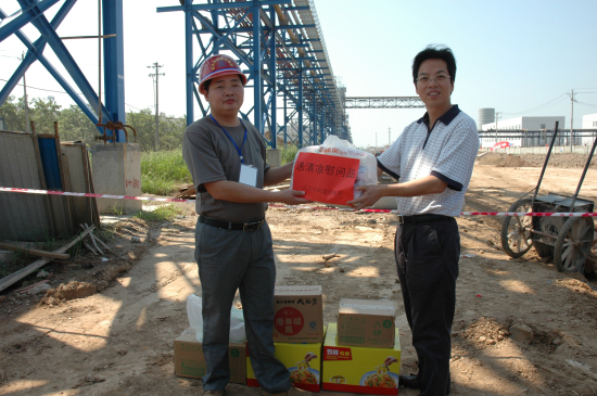 近期持续高温,集团党委副书记、副总经理张国强、集团党委副书记、纪委书记、工会主席王卫东冒酷暑带领集团工会、政治部、管理公司到青山化工区焦沙路吴沙大道、龙王嘴、高新二路、光谷一路、地铁四号线三标、武昌环湖路、梅子东路等7个施工现场,看望和慰问奋战在一线的干部职工,送去绿豆、白糖、酸梅膏、毛巾等“清凉”食品和日用品,并嘱咐他们在工作中严格执行夏季作息制度,注意防暑降温,切实做好高温季节生产的组织与管理,确保夏季安全生产。(李娜)